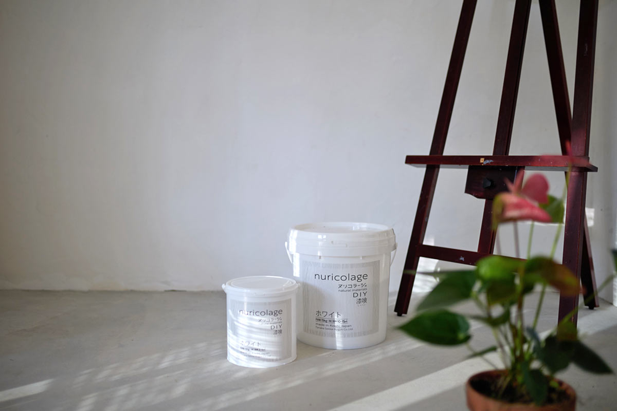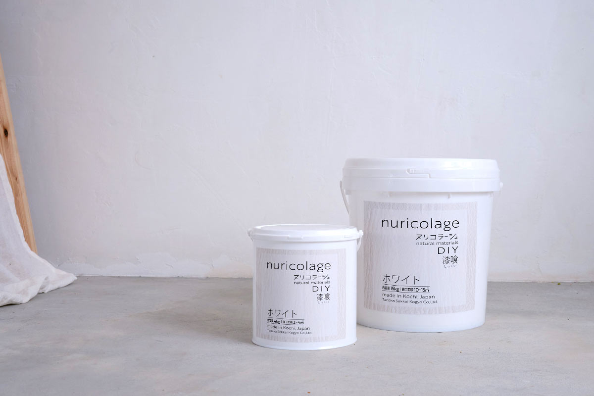 nuricolage -ヌリコラージュ- とは、誰でもが簡単に壁塗りできるように作られたDIY用の漆喰(しっくい)クリームです。